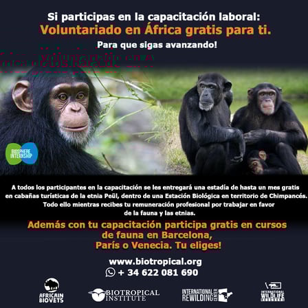 Sabemos que acceder a algunos voluntariados en ocasiones es complicado y con frecuencia muy costoso (en África cualquier voluntariado con fauna cuesta miles de euros). Biotropical Institute y las organizaciones aliadas junto con International Wildlife Rescuers hemos conseguido agilizar el proceso y todos nuestros voluntariados son gratuitos.